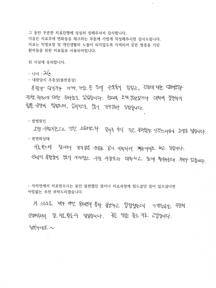 20대 최OO님의 ‘불안장애’ 치료후기입니다.